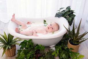 We start the session with baby wrapped or unwrapped in a basket then move to the white beanbag for some lovely natural shots of baby looking into the camera and then finish up with a nice warm milk bath for bub.